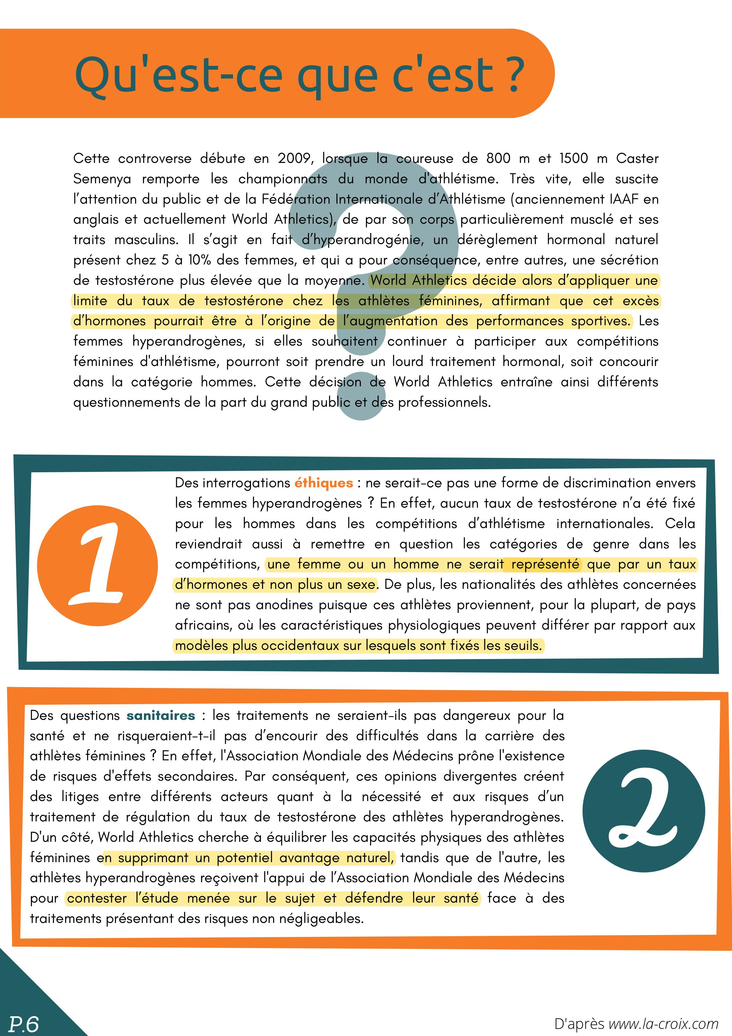 Alors que des athlètes féminines présentant plus d’hormones masculines dans le sang que la moyenne atteignent le podium international et obtiennent des résultats impressionnants, la Fédération World Athletics souhaite garantir l’équité des athlètes et impose donc aux athlètes dites hyperandrogènes de suivre un traitement de régulation hormonal pour poursuivre les compétitions féminines.